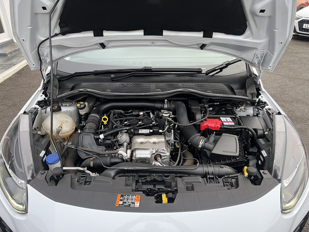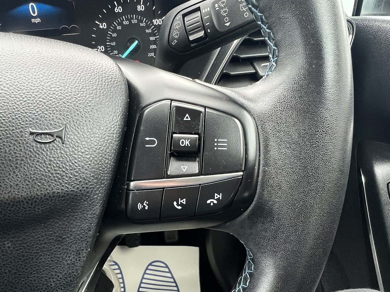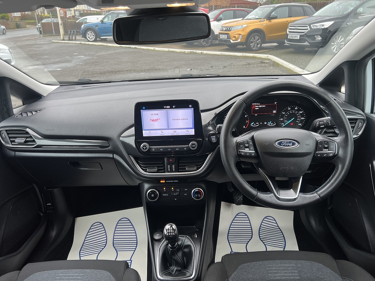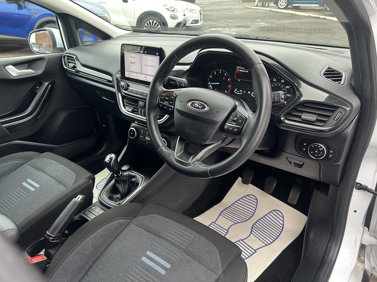 The car comes equipped with Smartphone Link - Apple CarPlay - Android Auto, Ford SYNC2.5 without Navigation or Embedded Voice Control and Embedded Modem, 4.2in TFT Ice Blue Illumination Analogue Cluster with Trip Computer, Cruise Control includes Speed Limiter and Intelligent Speed Assistance, Air Conditioning - Manual, Parking Distance Sensors - Rear, Quickclear Heated Windscreen, Lane-Keeping Aid with Lane-Keeping Assist, Selectable Drive Modes, Traffic Sign Recognition, Auto High Beam and Driver Alert, Windows - Electrically-Operated Front with One-Touch Lowering-Closing on Drivers Side, Door Mirrors - Heated - Electric - Integrated Side Indicators - Body Coloured, Trip Computer, Tyre Pressure Monitoring System - TPMS, 17in Alloy Wheels - 5 Spoke Rough Metal - Machined Finish