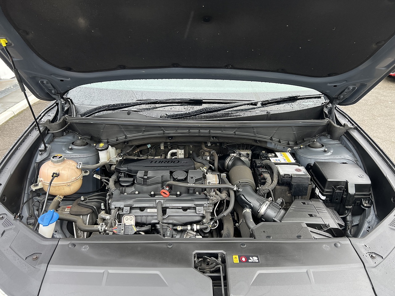 The car comes equipped with Upgrades - Phantom Black, Standard Features - Phone Connection - Apple CarPlay, Phone Connection - Android Auto, Panoramic Sunroof - Glass - Electric Tilt and Slide, 10.25in Touchscreen Satellite Navigation - Mapcare - LIVE Services, Climate Control - Three Zone, Cruise Control, Parking System - Rear Camera, Parking Sensors - Front and Rear, Blind Spot Collision Warning, Wireless Phone Charging Pad, Heated Front Seats, Rear Seats Outer - Heated, Heated Steering Wheel, BlueLink, Smart Electric Tailgate, Bluetooth Connectivity, USB Connections - Front and Rear, Smart Key - Keyless Entry with Engine Start-Stop Button, DAB Digital Radio, E-Call