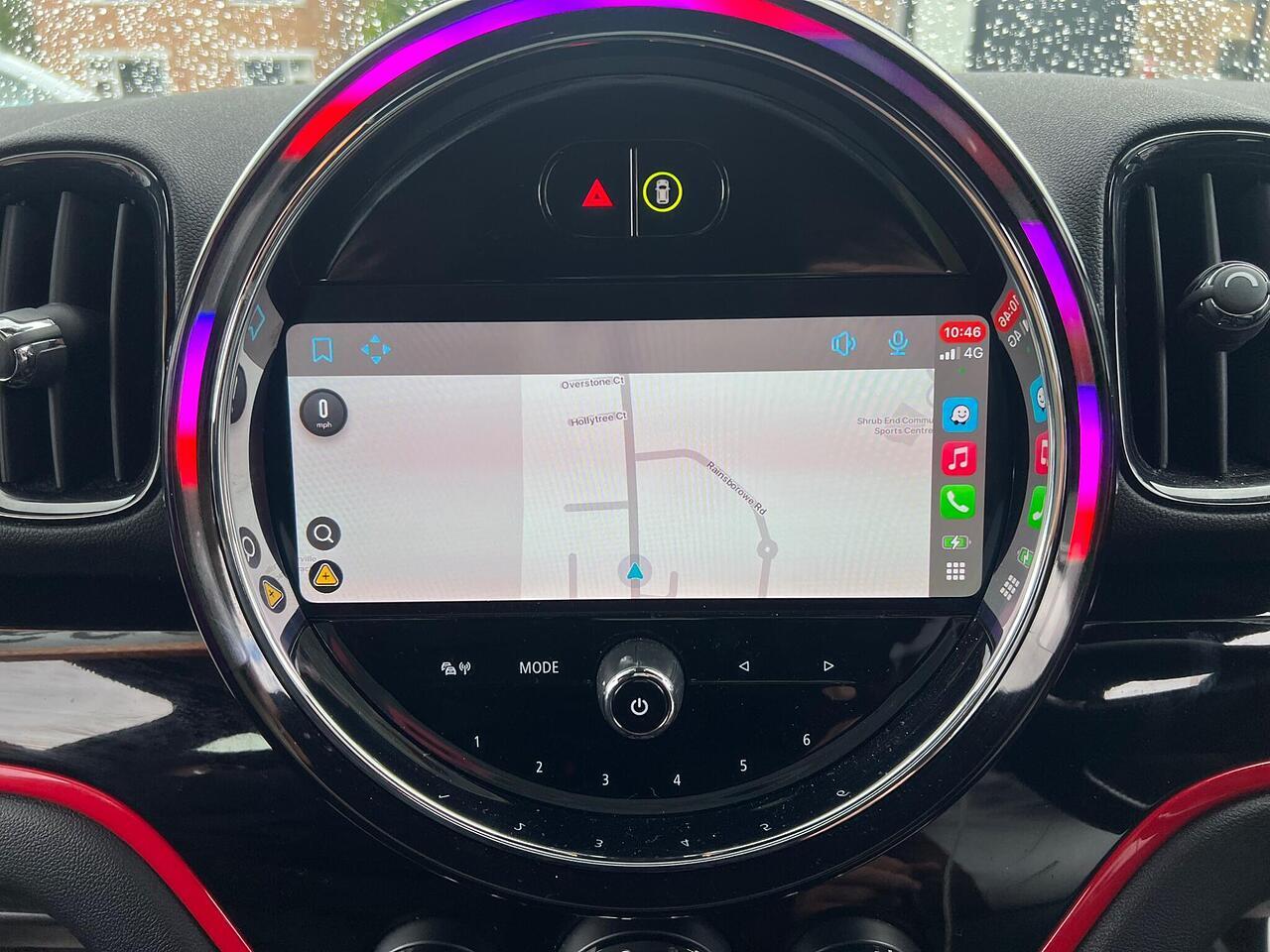 The car comes equipped with Apple Car Play, Dinamica-Cloth - Carbon Black, Navigation Pack, Piano Black Exterior Pack, Cruise Control with Brake Function, Air Conditioning - Manual, Bluetooth for Compatible Mobile Phone - with Audio Streaming, Electric Windows, 18in Alloy Wheels - John Cooper Works Grip Spoke
