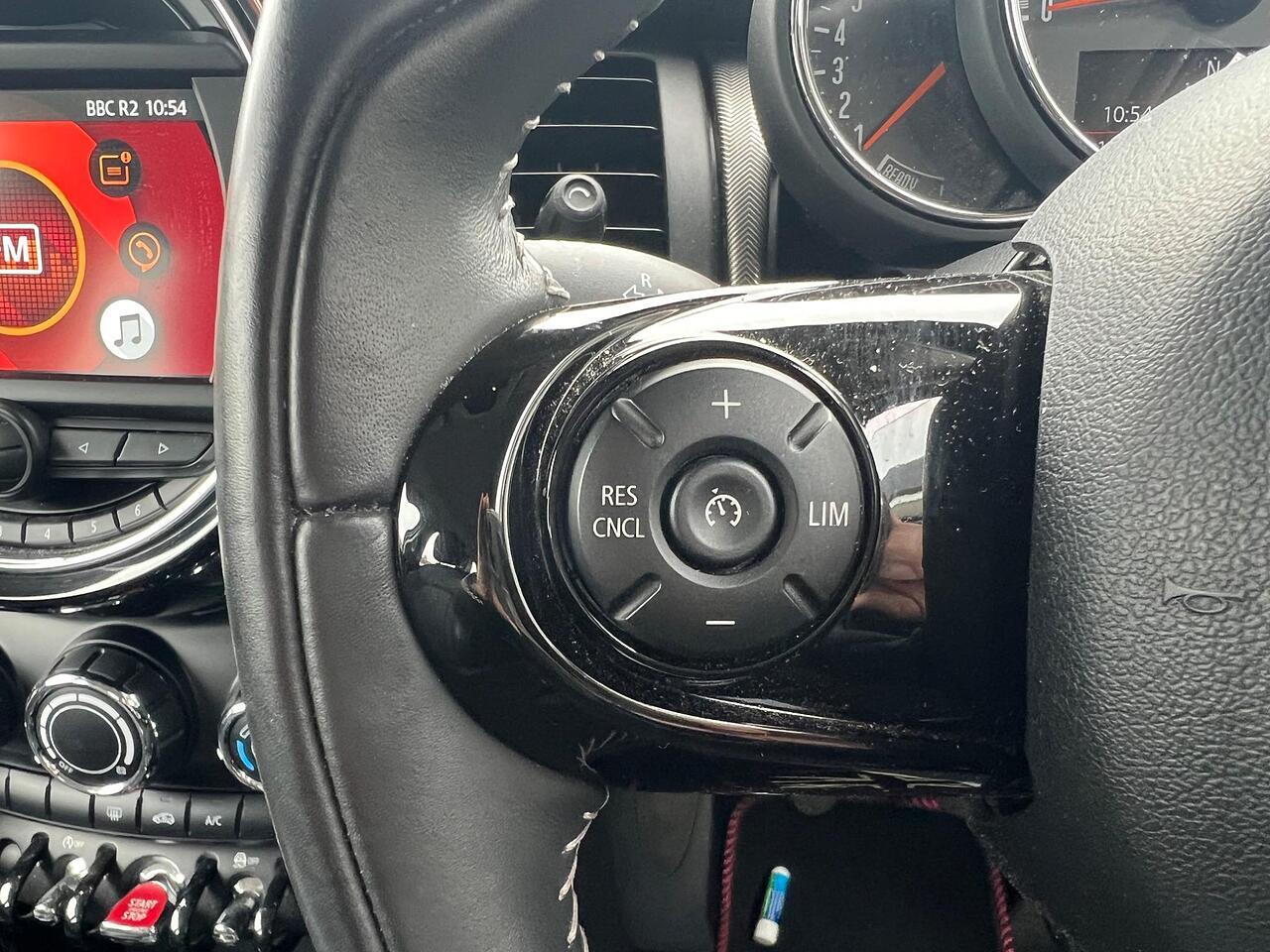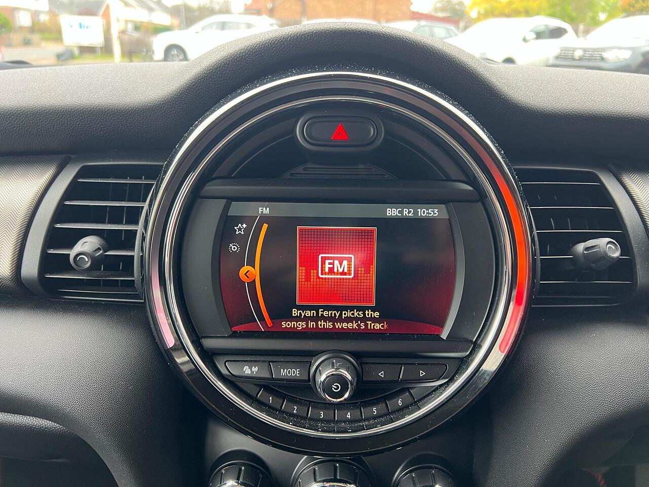 The car comes equipped with Upgrades - Roof and Mirror Caps - Black, MINI Yours Lounge Leather - Carbon Black, Standard Features - Air Conditioning - Manual, Cruise Control with Brake Function, Start-Stop Toggle including Keyless Go, Electric Windows, 6.5in Screen with LED Ring, FM Tuner and DAB Digital Radio, Bluetooth for Compatible Mobile Phone - with Audio Streaming, 17in Alloy Wheels - Roulette Spoke